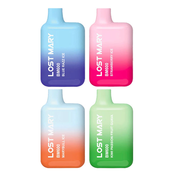 Pre-filled with 2ml of salt nicotine e-liquid, with whatever flavour of your choosing you'll be hit with repeated, smooth feeling throat hits with 20mg of nicotine strengths that will cite your nicotine carvings faster and for longer. Thanks to its built-in 350mAh battery, each Lost Mary BM600 vape will last up to around 600 puffs without any need to re-fill or recharge. Once it runs out, safely dispose of the item.
